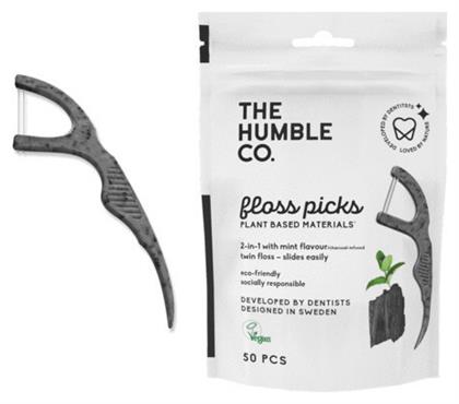 . Floss Picks with Charcoal Οδοντικό Νήμα με Γεύση Μέντα και Λαβή σε Μαύρο χρώμα 50τμχ The Humble Co